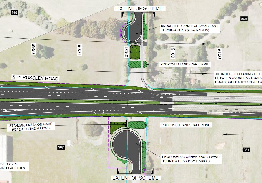 - Further south, road access in and out of the two sides of Avonhead Rd will be removed. The plans indicate a path connection from Avonhead Rd east, but I’m not sure why it’s oriented only for riders entering SH1, not exiting.
