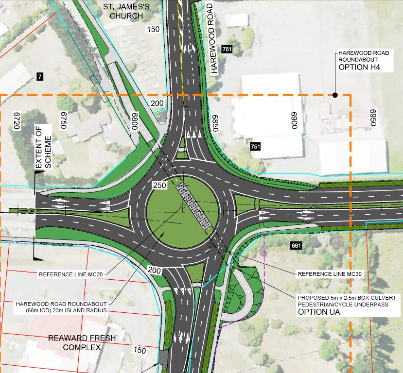 Oh lordy. So riding from Bishopdale along Harewood Rd to Raeward Fresh is a regular thing for me. I can’t see this making it easier — how is the approach to the underpass supposed to work?