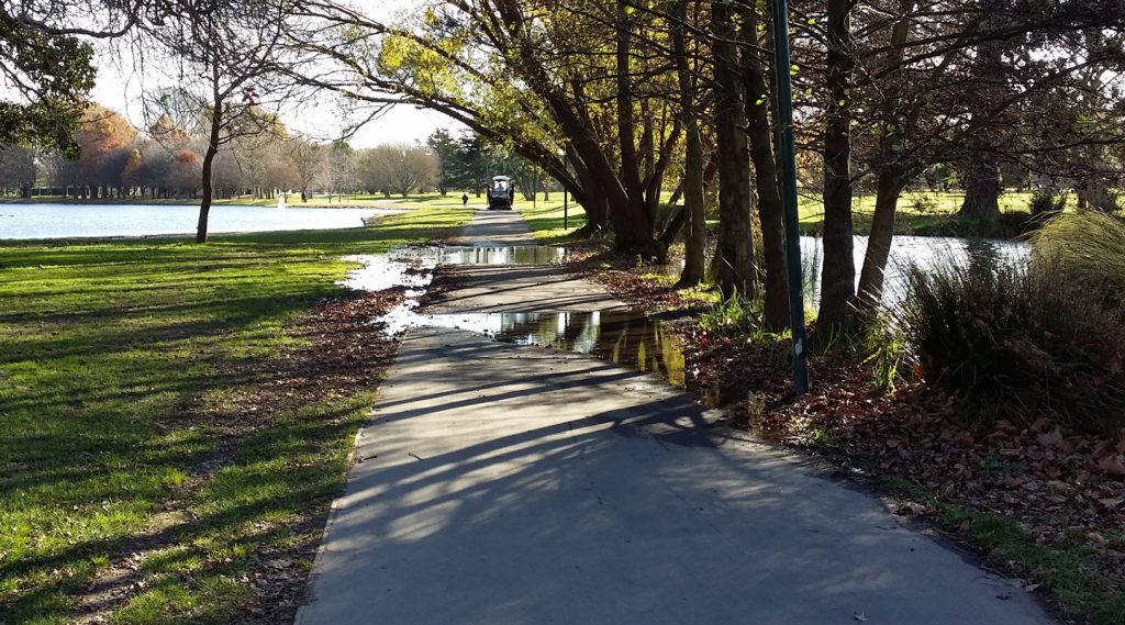 It’s not clearly stated, but I would presume that the improved Hagley Park path will provide sufficient clearance from the ponding problems currently found near Lakes Albert/Victoria and avoid the existing protruding tree roots too.