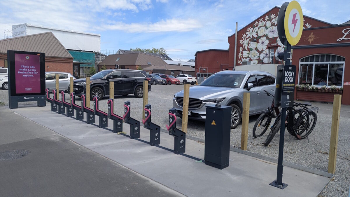 We’ve talked a few times lately about the various Locky Dock secure bike stands popping up around the city – and now another one has shown up. This time, it’s actually just by my offices, outside the popular Little Poms cafe on the corner of Fitzgerald Ave and Kilmore St.
