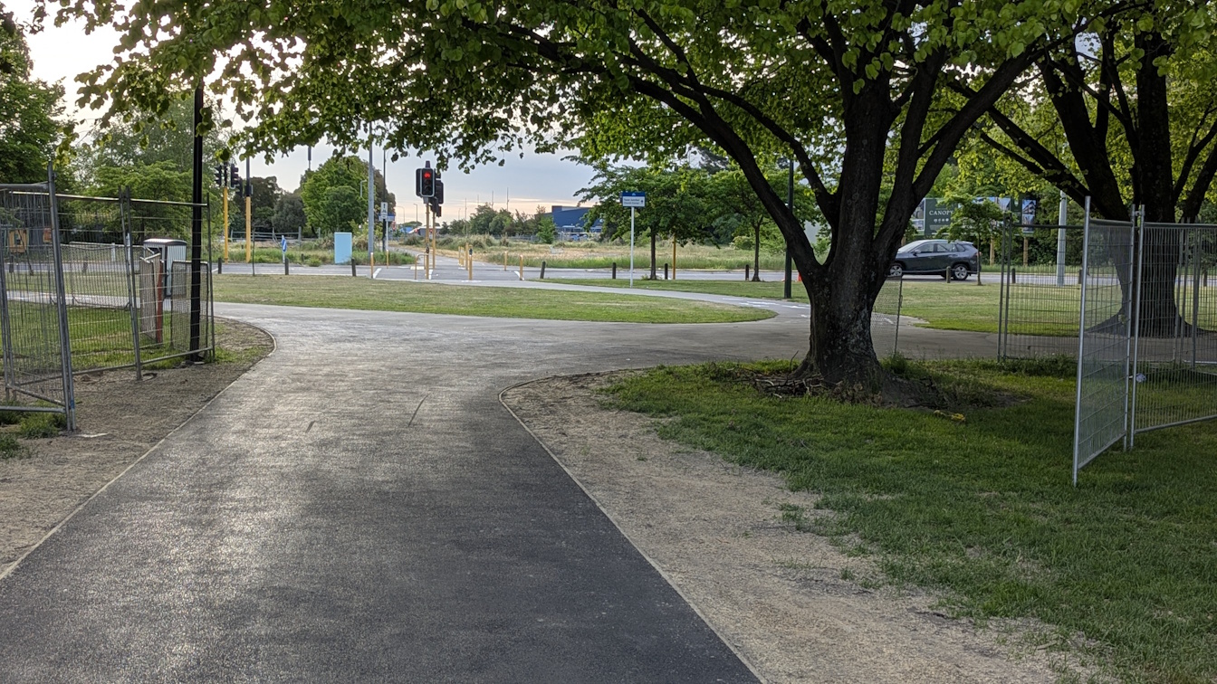 Finally the new pathway rejoins the western side pathways and the road crossing connection further on towards the South Express cycleway.
