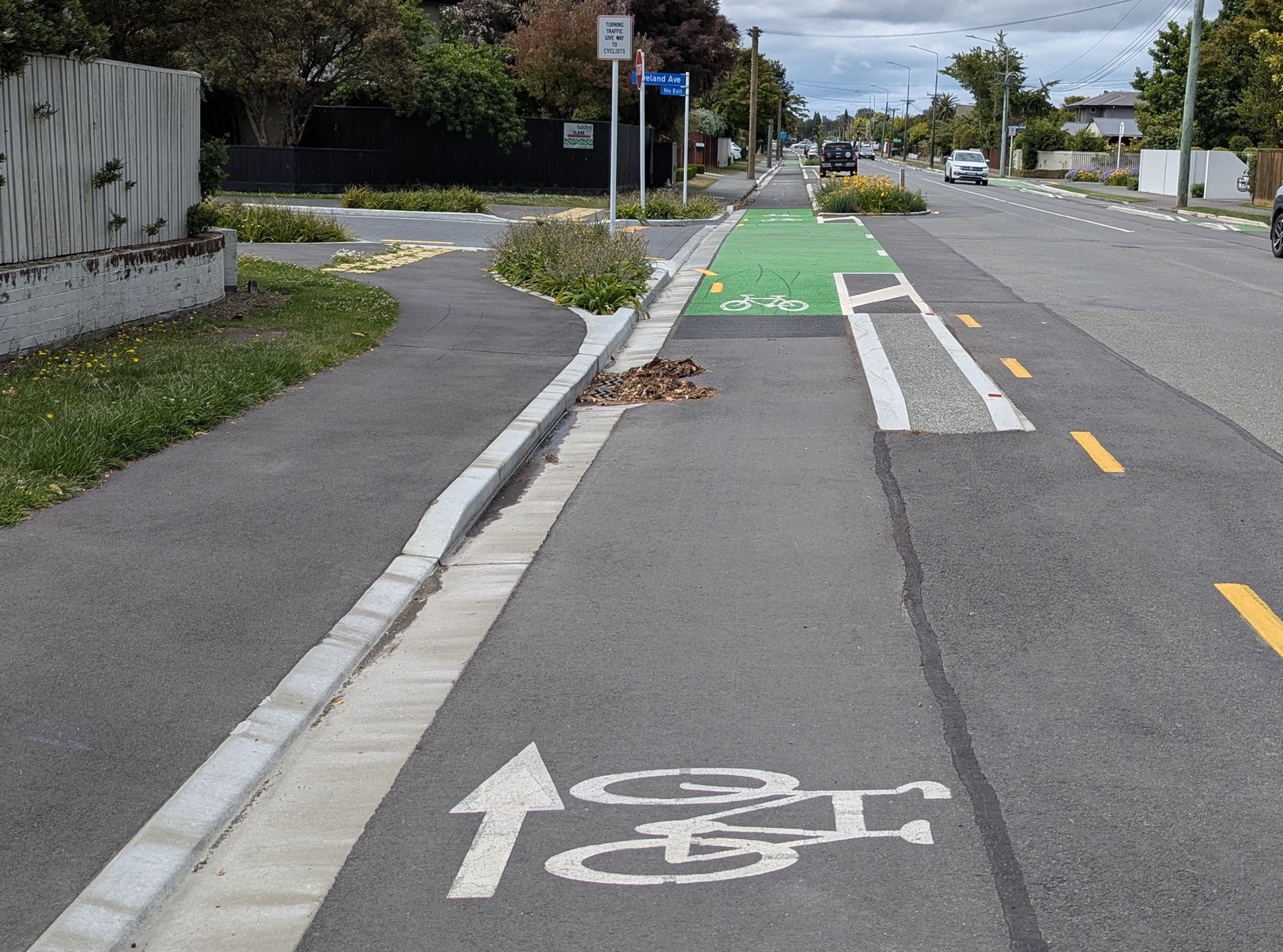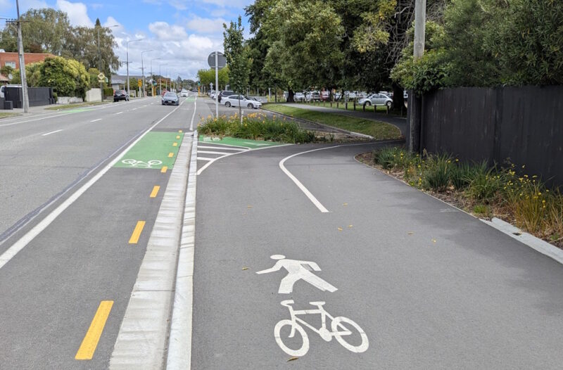 Now the cycleway becomes separated one-way cycle paths on each side of Ilam Rd.