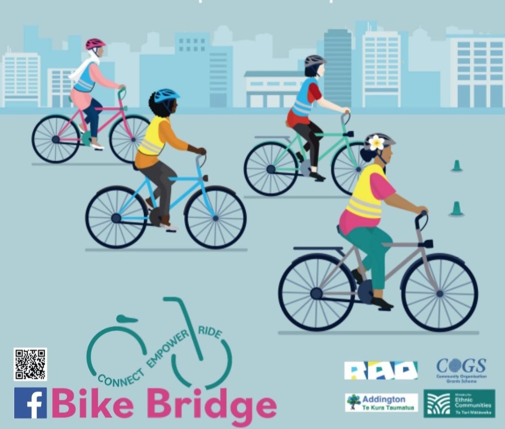 Bike Bridge are another local community group where the aim is to empower women to learn how to ride, with free lessons by other women. The sessions start by learning biking basics in a supportive, off-road environment, and then progressing to learning to cycle safely on the road. The first session was just held at Addington School this evening, and further weekly lessons will be held there every Wednesday from 5-7pm through to the 1st of April.