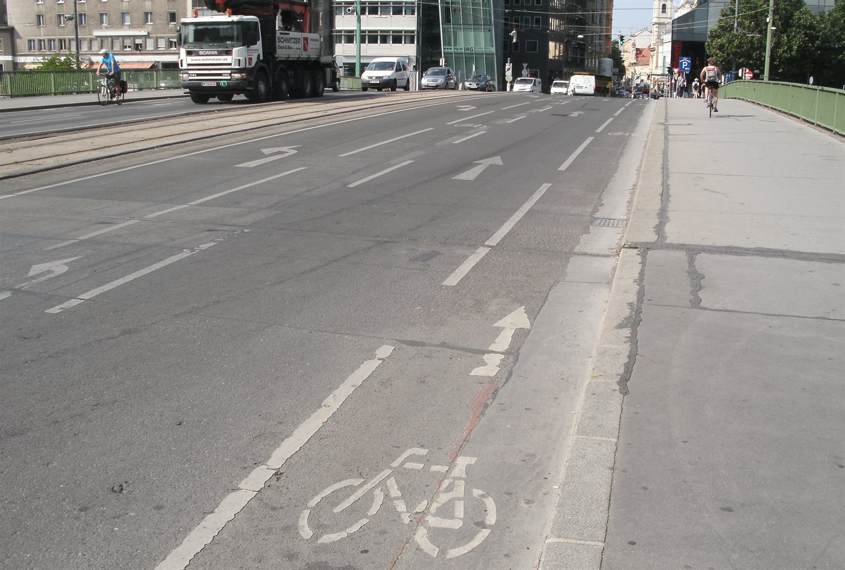 Previous Image Next Image Vienna (79) Some on-road cycle lanes – but the cyclist would rather stick to the path